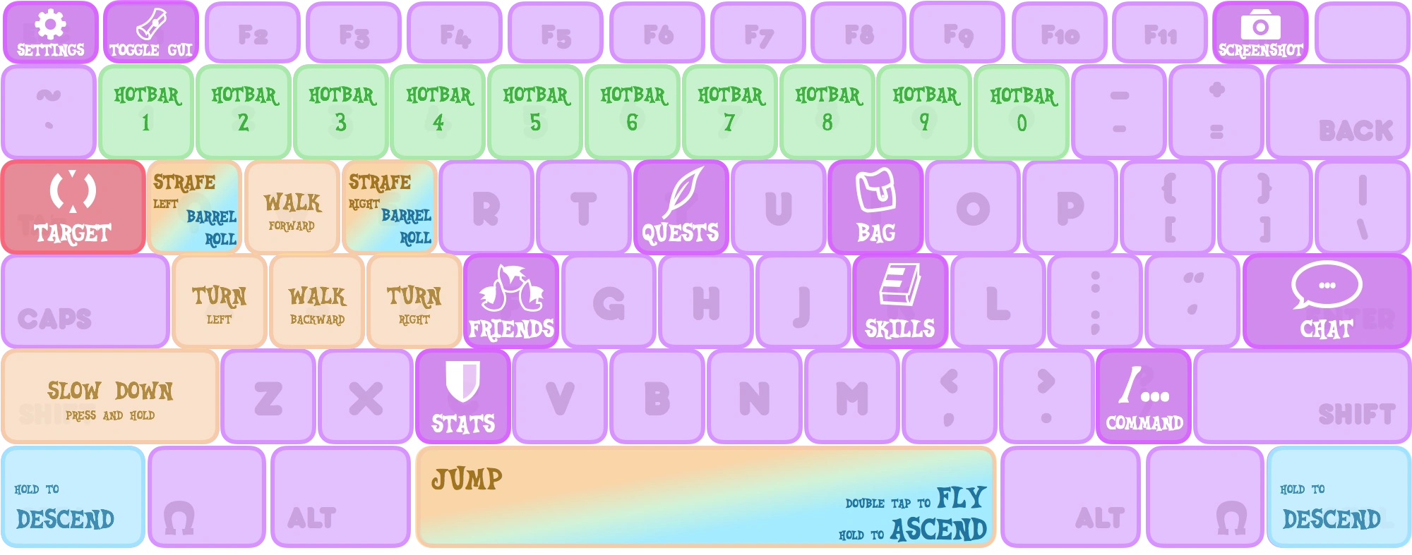 Both the mouse and keyboard are used in this game. The mouse allows one to target players and mobs or perform actions with a left-click, and open menus for actions with a right-click. Non Player Characters (NPCs) can be interacted with by right-clicking them, which will reveal a menu with options such as Talk or Shop.